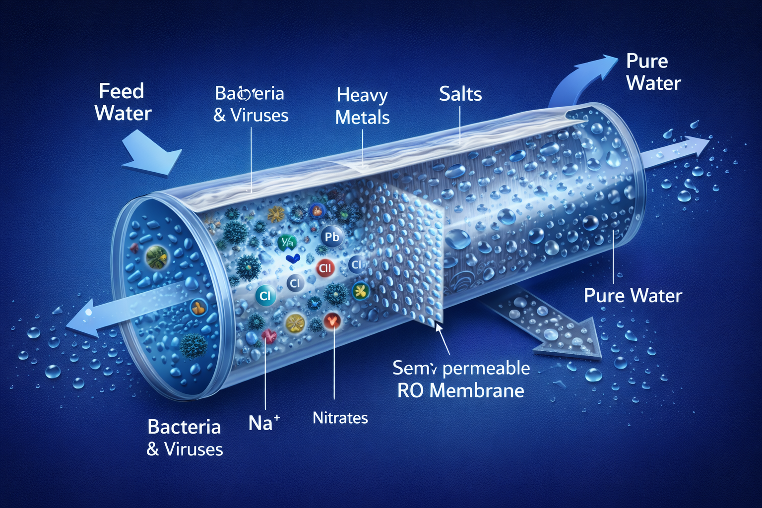 Системы обратного осмоса обеспечивают глубокую очистку воды на молекулярном уровне. Специальная мембрана удаляет до 99 % растворённых примесей — солей жёсткости, нитратов, тяжёлых металлов, органических соединений, бактерий и вирусов. В результате получается кристально чистая и безопасная вода для питья, приготовления пищи и технологических процессов.